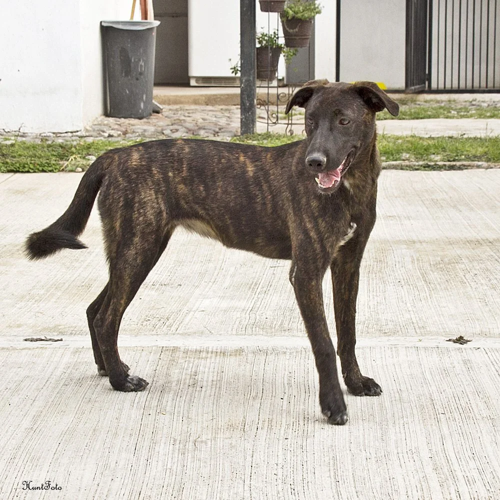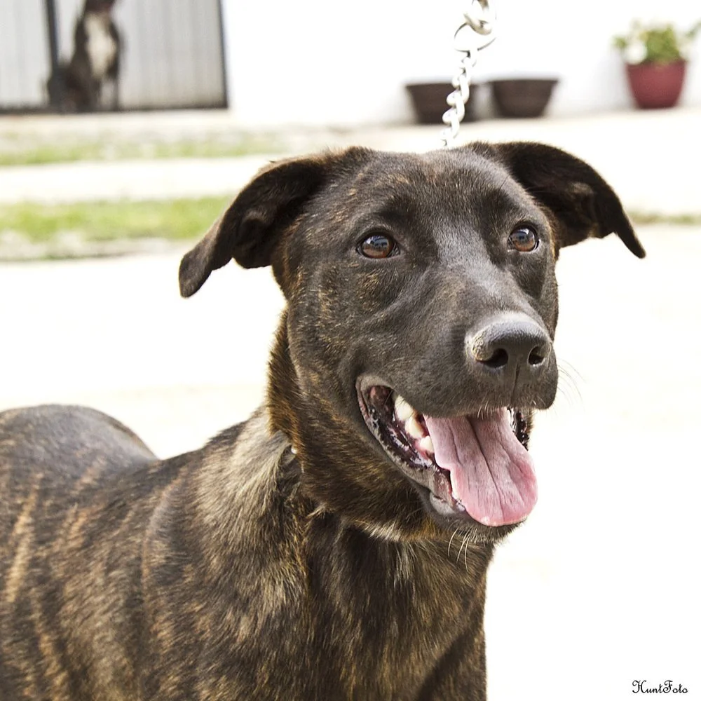Meet Acorn! Acorn is striking lab mix with a beautiful dark brindle coat. She is just over a year old and weighs 40lbs. Acorn is an active and happy gal with a charming personality. She loves to play and has a zest for exploration, Acorn is always ready for the next escapade. Whether it's chasing after a ball, romping through the park, or simply enjoying a leisurely stroll, she embraces every opportunity to experience the world around her. As an adventurous soul, Acorn is an ideal companion for those who love the great outdoors. She's always up for a hike in the woods, a day at the beach, or a cozy campfire under the stars. Her enthusiasm for life is contagious, reminding us all to savor the simple pleasures and find happiness in the little things. Acorn is great with other dogs and children of all sizes. She is ready to start her next and best adventure with you!