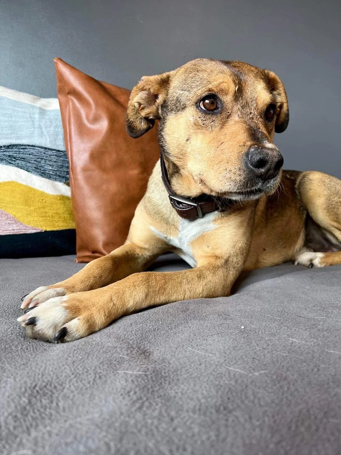 Meet Buddy! Oh our Buddy, what a wonderful boy he is. Buddy was found wandering around property on the Navajo Reservation in New Mexico. You can tell by the many scars on his face that he has lived a hard life. Once you spend 30 seconds with Buddy you can see he has a good soul and a heart of gold. One that desperately wants to open up to you, yet is cautiously reserved while getting to know you. Buddy is a quiet and serious dog, he has never been afforded the luxury of having fun or being care free but that is exactly what we plan to find for him, a home where he can enjoy some of the finer things in life, a comfy bed, a human (or two or three) who love him. We did get to see joy on Buddy’s face when we loaded him in the car to head north, he absolutely loves watching out the window. Buddy sat and watched for hours as we drove along the desert landscape with the most precious and innocent smile on his face. He enjoys cuddling in your lap and leaning into you as he stands at your side. He is potty trained, does great on leash and is good with other dogs and kids. This sweet soul is ready to leave his hard past behind and find his new happy place. He just wants to be, well, your buddy. He is being fostered in Bend, OR.