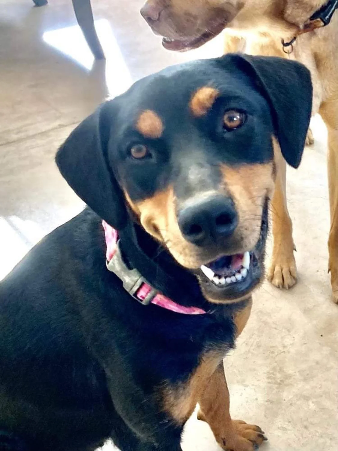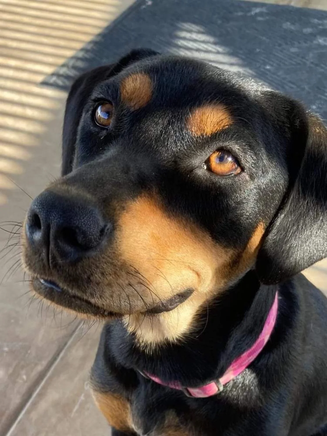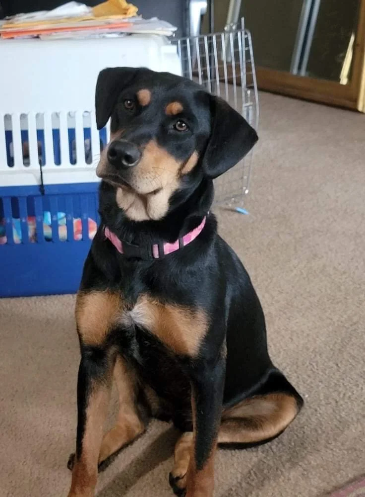 Meet Chloe! Chloe is a gorgeous Rottweiler mix who is abut 2 years old, 50lbs. She's house trained, crate trained, and will even signal when she needs to go out. She loves going on walks and walks well on leash. She does great with other dogs and ignores cats. She is very gentle and does well with kids. She can be a bit shy at first and it takes her about 24 hours to feel comfortable in a new environment, she would be most comfortable in home with another dog. Chloe is ready to start her next chapter with you and is being fostered in Portland, OR.
