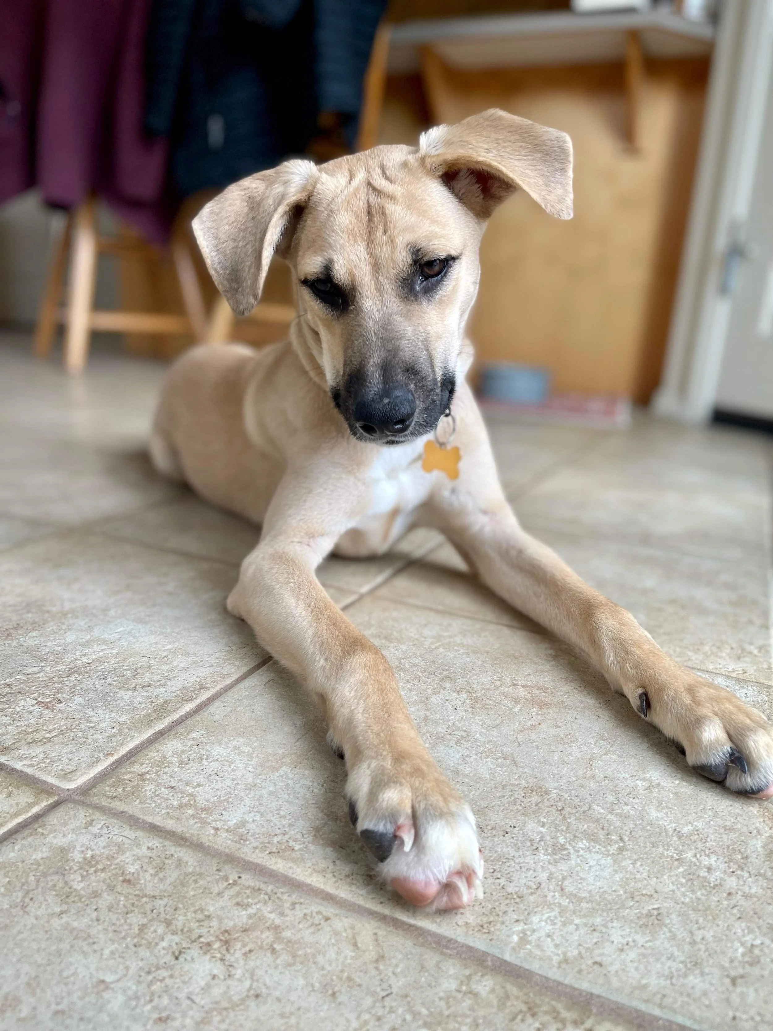 Meet Grey! Grey is about 8 months old, 30lbs and loves to play! He gets along great with other dogs and humans of all sizes. He has long legs and is looking for an active family or BFF to run and adventure with. He would love a home with a large yard and another dog active dog for him to play with. He is potty trained, crate trained and is currently being fostered in Bend Oregon enjoying all the snow. He is ready to start his next and best chapter with you!