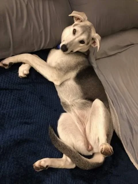 Meet Juno! Juno is such a polite, wonderful, little lady. She sits patiently and waits for her meals, to be let inside and to get pets. She loves nothing more than to cuddle right next to you and give you wet nose kisses. Juno is potty and crate trained and knows commands: sit, down, stay, wait, paw, drop it, come, and up! She has lots of energy and can play all day with other dogs, but will also mellow out when you ask her to come cuddle. Juno is good with kids and groomers. She has a beautiful grayish coat that is almost silver. She continues to work on her leash walking skills and needs to be reminded to not jump when she’s excited, but is doing better with consistency. Juno is about 10 months old, 45lbs. She is being fostered in Portland, OR and is such a gem! She will make the best companion for a lucky and loving family.