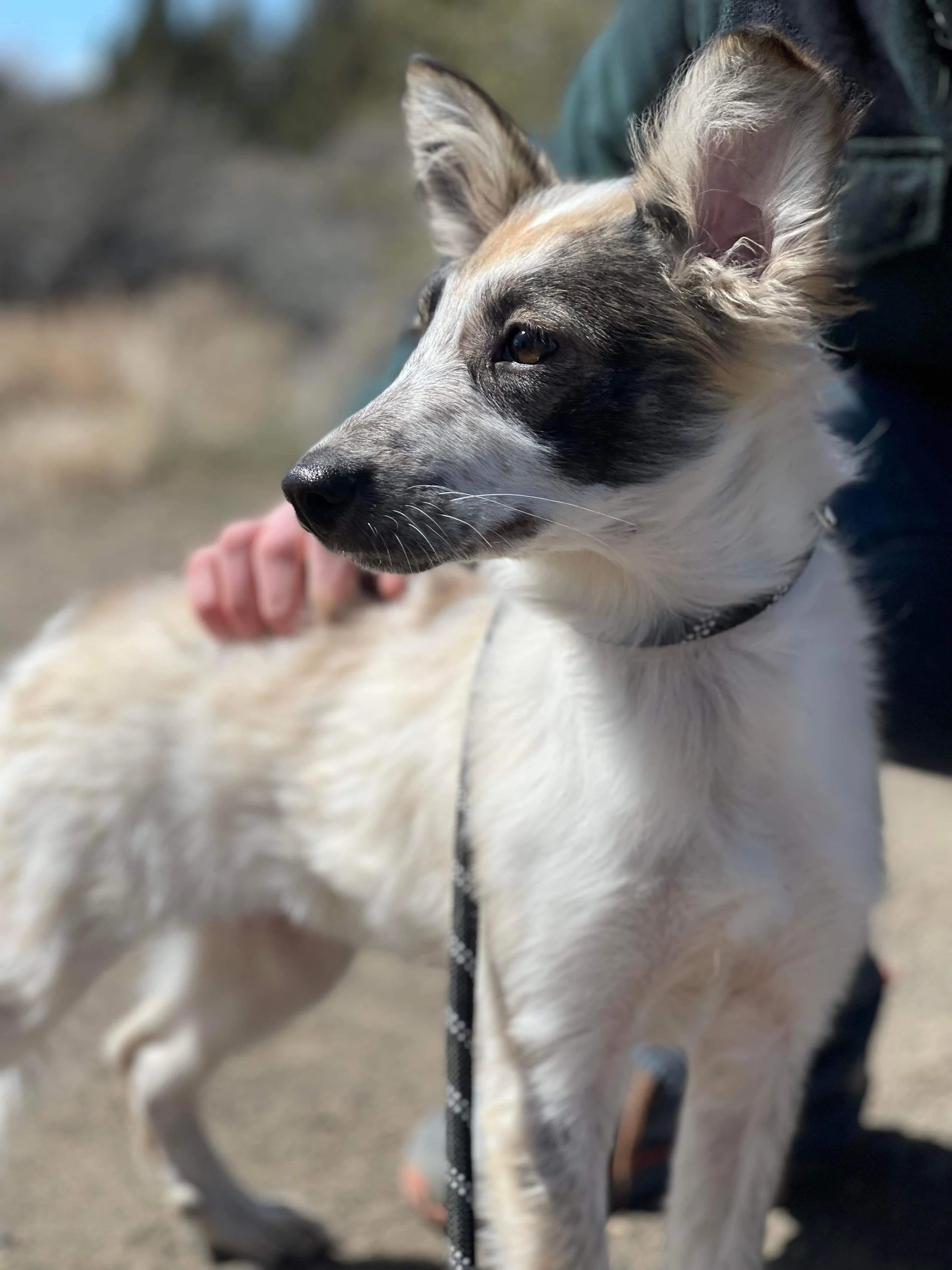 Meet Kahla! This little ball of fur is about 6 months old and 20lbs. Don’t let her small size fool you, she is ready for any adventure! Kahla has a good amount of energy and would someone who will run and play with her whether that be dogs, kids or you! She enjoys having fun with anyone and everyone. Kahla loves squeaky toys and snuggling in a cozy dog bed. She is highly food and treat motivated and eager to learn. She is house trained, crate trained, and walks well on leash. Kahla has a soft coat and unique markings that make her extra special. She was found on the Navajo Reservation in New Mexico so we don’t know her breed but we do know she is beautiful! Kahla is being fostered in Bend, OR and ready to start her next adventure with you!