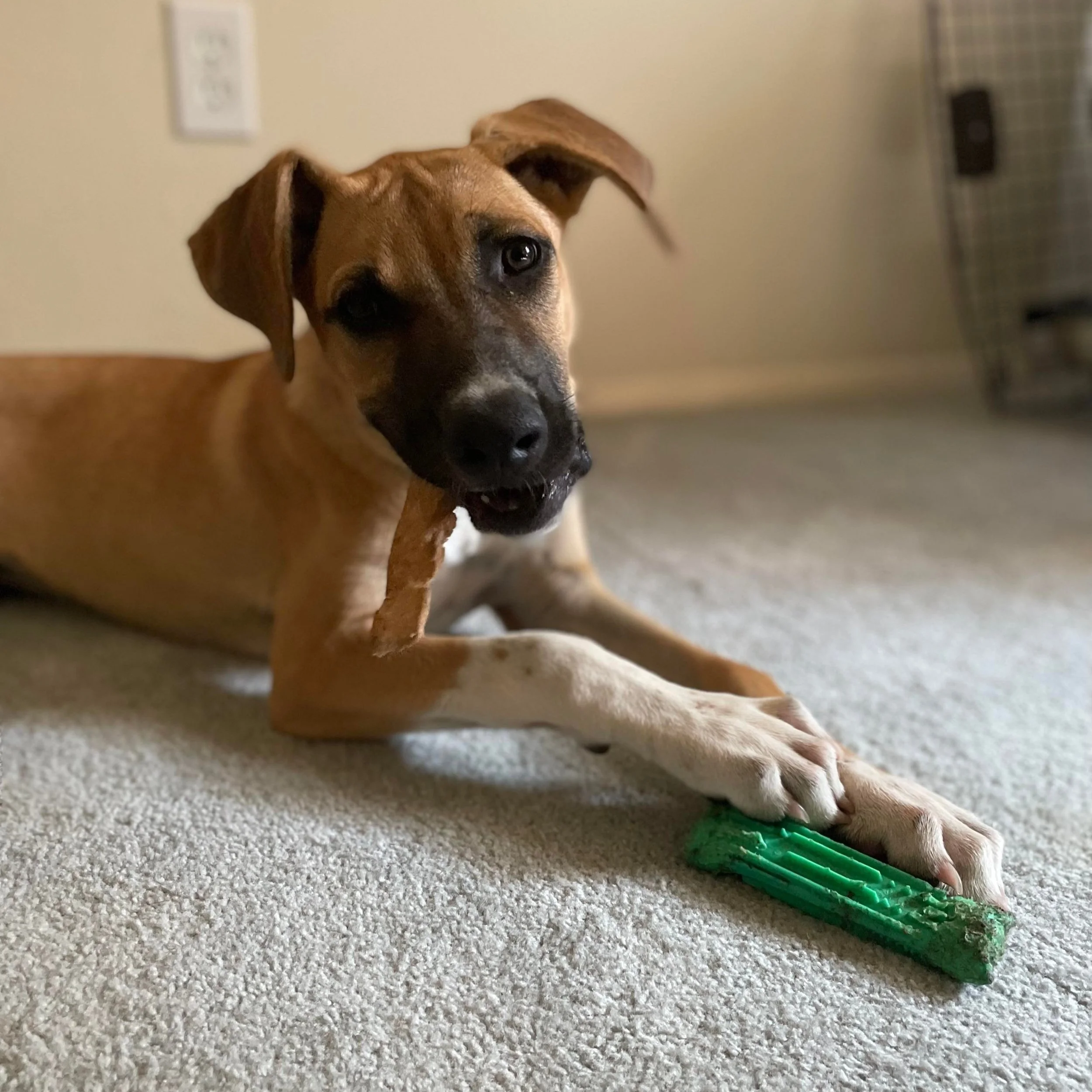 Meet Mango! This sweet almost 6 month pup is ready for his forever family! Mango is house trained, crate trained, and loves to play with other pups and children. He is currently working on his leash walking skills, perfecting his sit and stay tricks, and has almost mastered laying down on command. Mango is about 35lbs currently and we estimate he will grow to be about 55lbs. Mango loves to play with toys and other pups, and has had the opportunity to meet and play with all different types of dogs. Mango also has some experience around cats and did well when meeting them. Mango was found in the streets of Pescadero, BCS, Mexico at just a few weeks old with his mom and 7 other siblings. He is the largest out of the litter and just a sweet goofy cuddle bug. Mango is being fostered in Portland, OR and ready to start his next and best chapter with you!