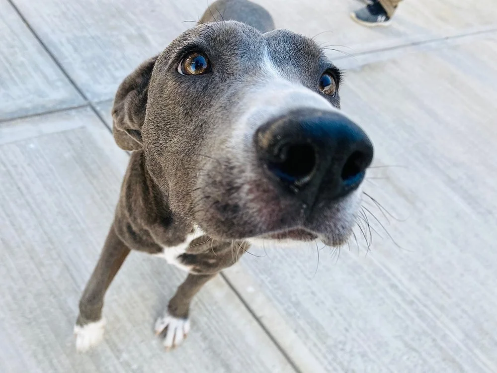 Meet Merlina! Merlina is a gorgeous silver lab mix that exudes a calm and loving energy. She is about 2-3 years old, 45lbs and has a gentle and mellow demeanor. She gets along well with other dogs, kids and cats and is very affectionate towards anyone wanting to say hello. With her gentle and loving attitude she will make a great cuddle buddy and best friend to any human large or small. She walks well on leash and is eager to please and loves to be loved. Both adoption and foster options are available for Merlina and she is ready to start her next and best adventure with you!