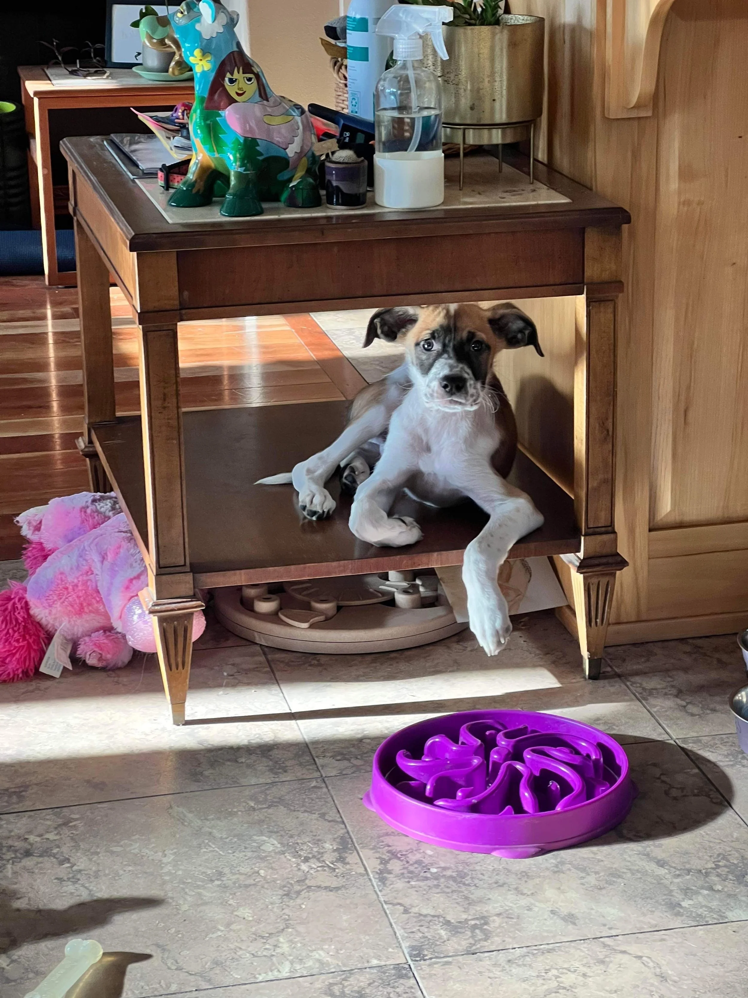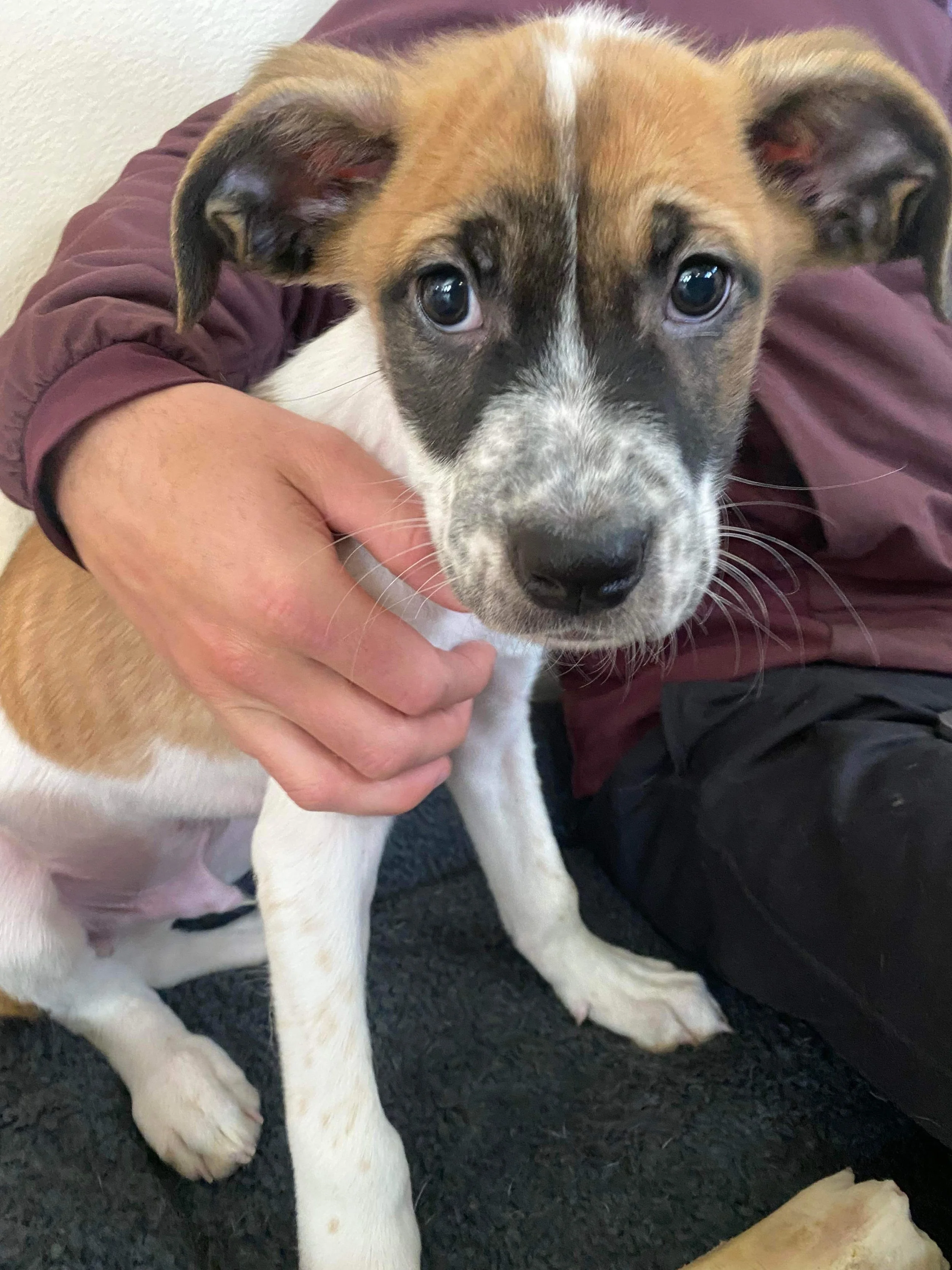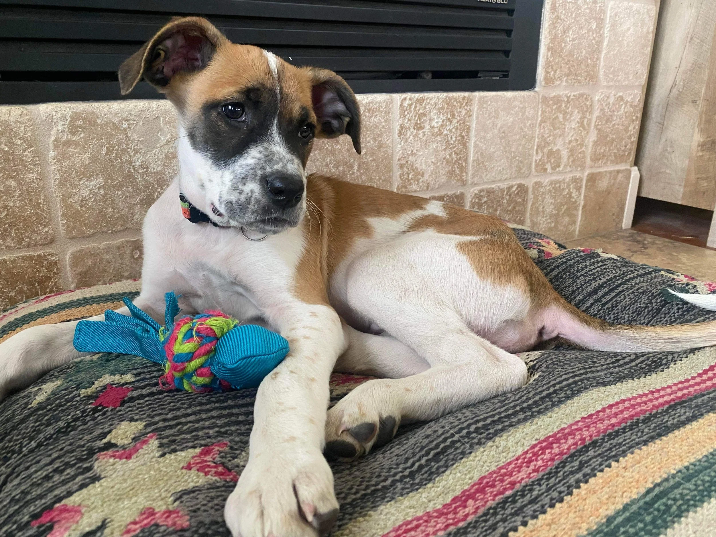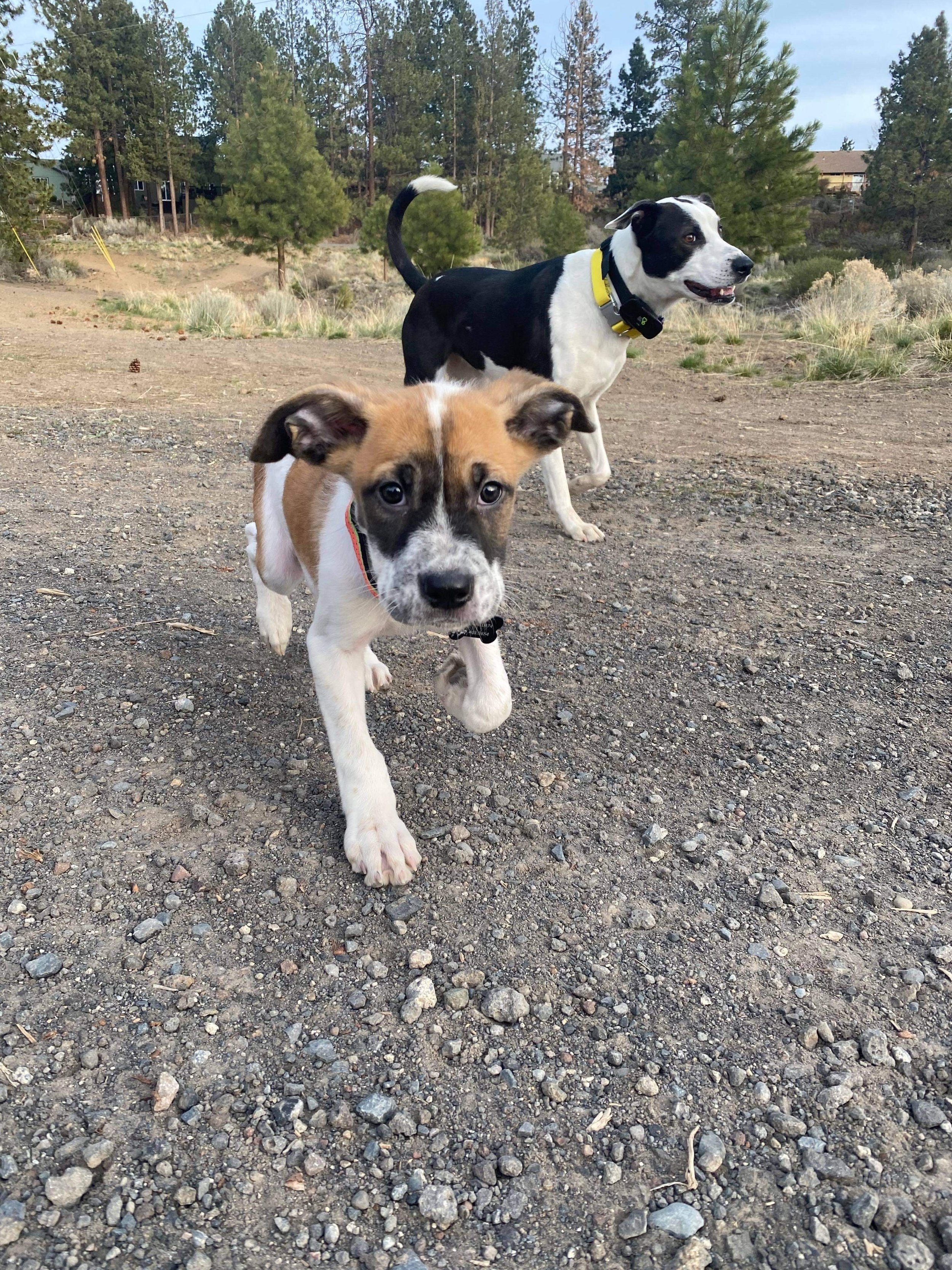 Meet Pogo! Meet Pogo! Pogo arrived from New Mexico in and is living up to his name. When he gets excited or finds a new toy, he becomes a living pogo stick! Pogo has a ton of personality and when he’s not playing, he’ll happily curl up in a ball in his bed or your lap. He’s a quick learner and will follow you like velcro on walks - although you might have to stop a lot to let people greet him - he gets a lot of attention! Pogo might be shy at first with new friends but he opens up quickly and gets along with everyone (humans and dogs). He’ll make a great addition to a family or anyone looking to raise a young puppy. Pogo is 17lbs, 4 months and hard to say what mix of breeds he is. He will likely be a medium sized dog. Pogo is ready to bounce into your life and steal your heart! He is being fostered in Bend, OR.