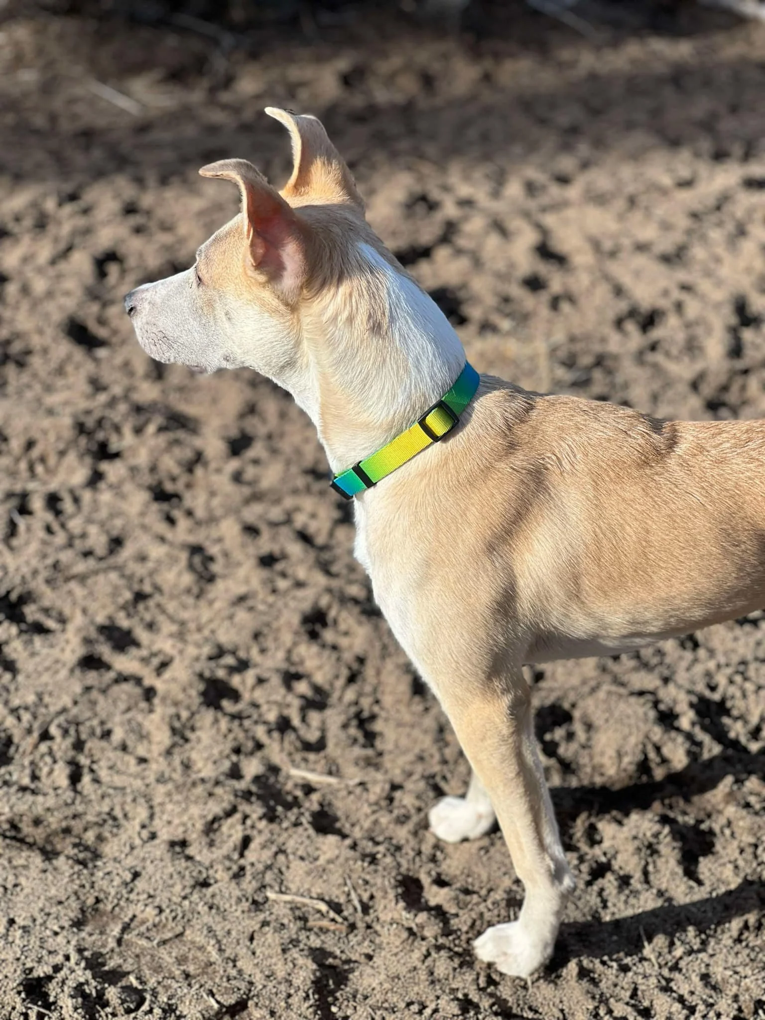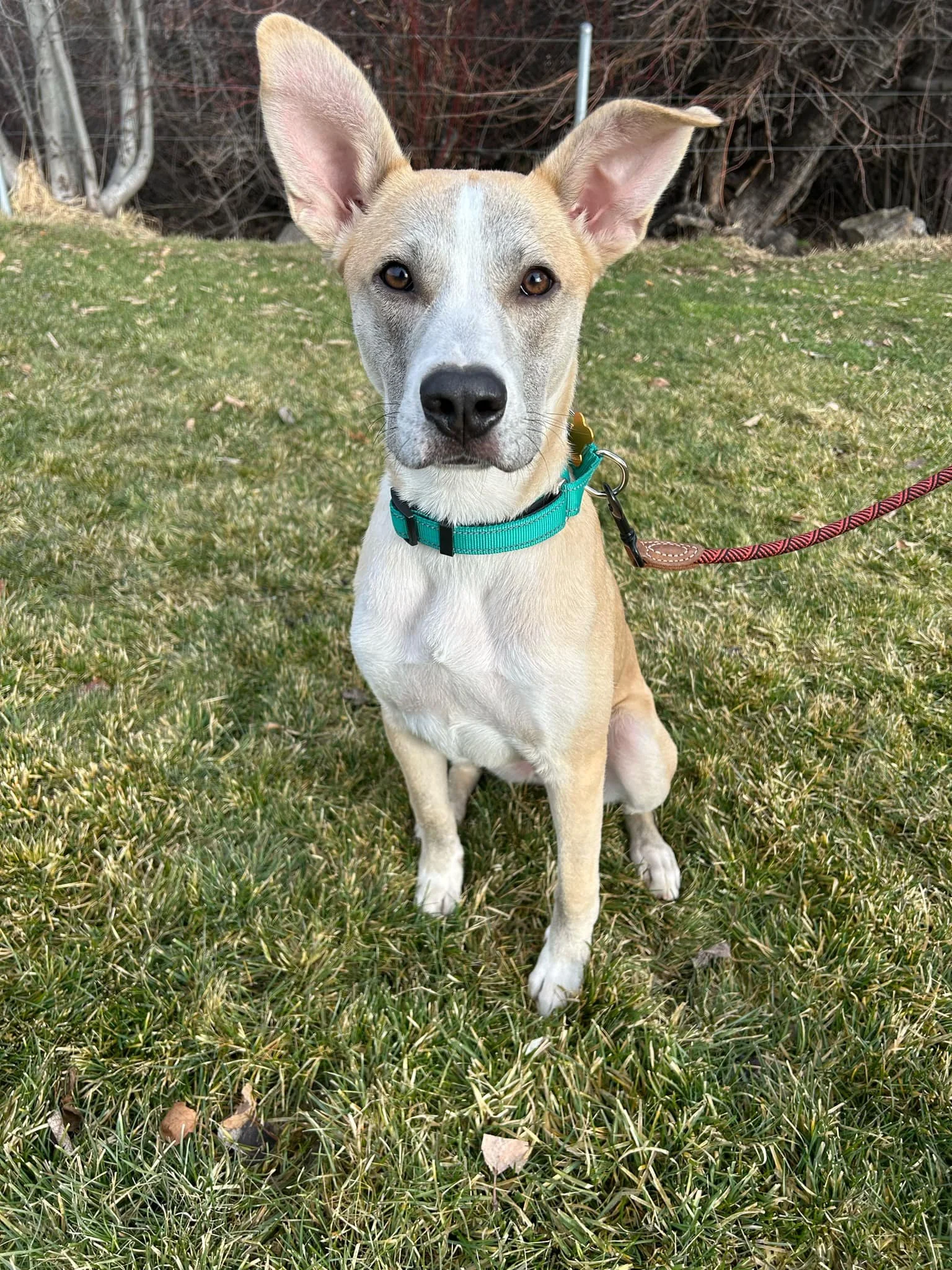 Radar is a 8-month-old pup with a sweet and loving personality, ready to bring joy to his forever home. Though he’s still young, Radar has an old soul and isn’t your typical rowdy puppy—he’s incredibly mature for his age. He gets along great with dogs of all ages and sizes, thanks to his great social skills and would do best in a home with another dog for him to pal around with. He also does well with cats and has lived harmoniously with his foster family’s feline friend. This gentle pup is wonderful with children, thanks to his calm demeanor and lack of jumping, making him an excellent choice for families with little ones. He walks beautifully on a leash, is fully potty trained, and can be left home alone without causing any trouble. Radar also rides well in the car and easily adapts to new enviornments, making him an ideal companion for outings and adventures. He’s the perfect balance of playful energy (he LOVES the dog park) and affectionate snuggler, always ready for fun but equally happy to curl up for some quiet time. And those ears? Simply irresistible! Radar is being fostered in Bend, OR, and is eagerly waiting to meet the family who will give him his forever home.