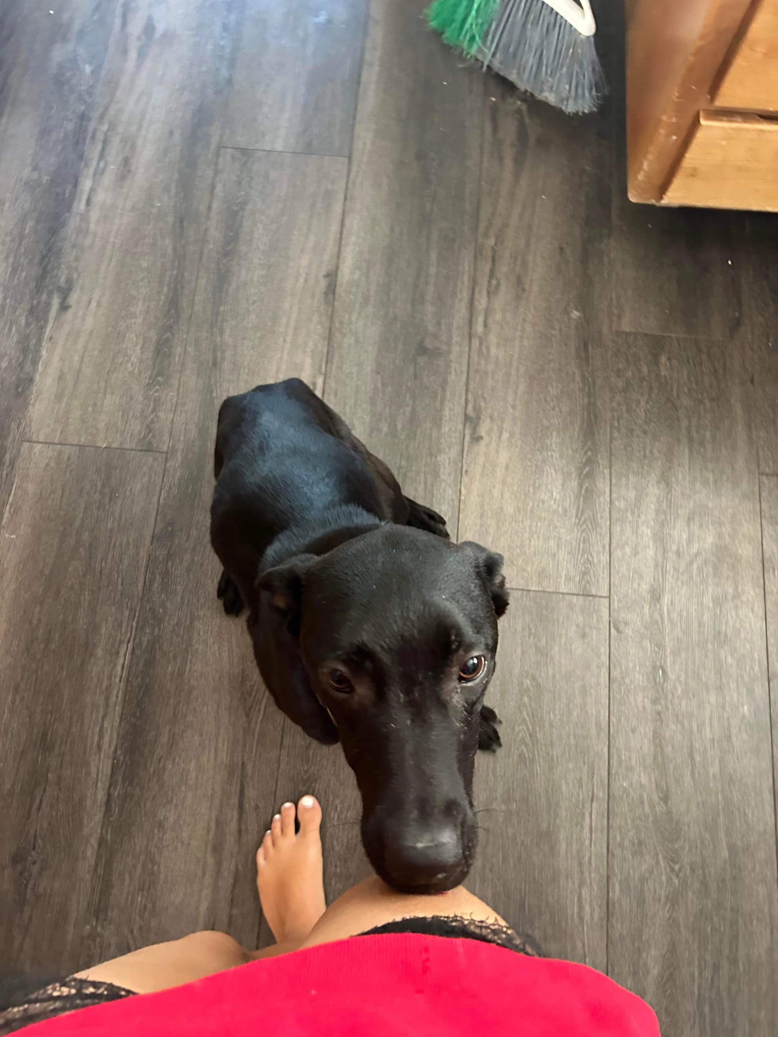 Meet Scout! Scout is a 1.5-year-old black Lab mix with a sweet and delicate disposition. Weighing in at 38 lbs, she is the perfect blend of playful energy and gentle affection. Scout's black coat and expressive soulful eyes make her a striking beauty. Scout is incredibly friendly, loves to meet new people and dogs, and enjoys long walks and playtime at the park. Her favorite activities include chasing after balls, snuggling on the couch, and giving lots of kisses. Scout is being fostered in Bend, OR and is excited to find a loving home where she can share her sweet nature and bring joy to her new family!